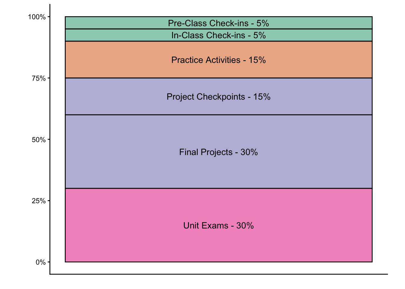 At the end of each unit, you will also have a 1-hour on-paper exam in class. This exam will cover conceptual material from the required readings. It will be similar in nature to the check-ins and exercises from the readings, but unlike the check-in quizzes in class, it will not be identical to questions you have already seen.
