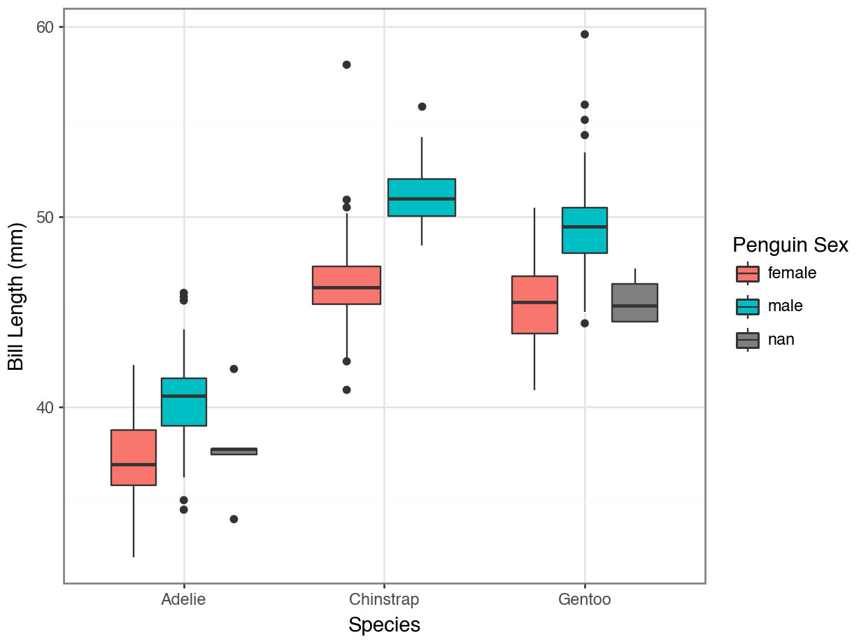 x, y, and fill are three possible aesthetics that can be specifiedgeom_XXX() functions allow for different plotting shapes (e.g. boxplot, histogram, etc.)
