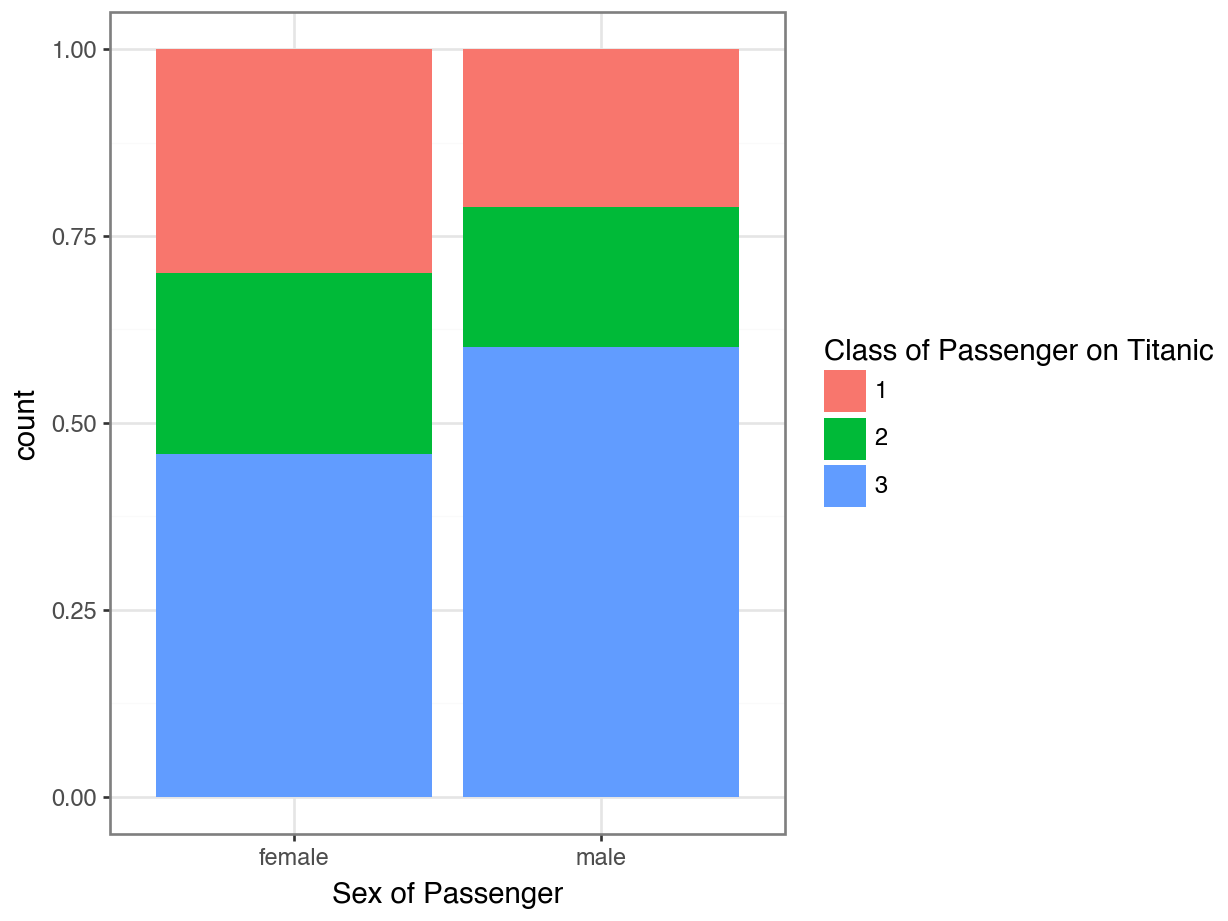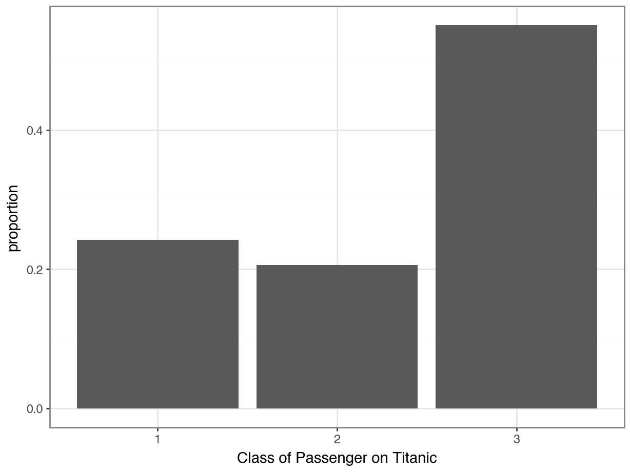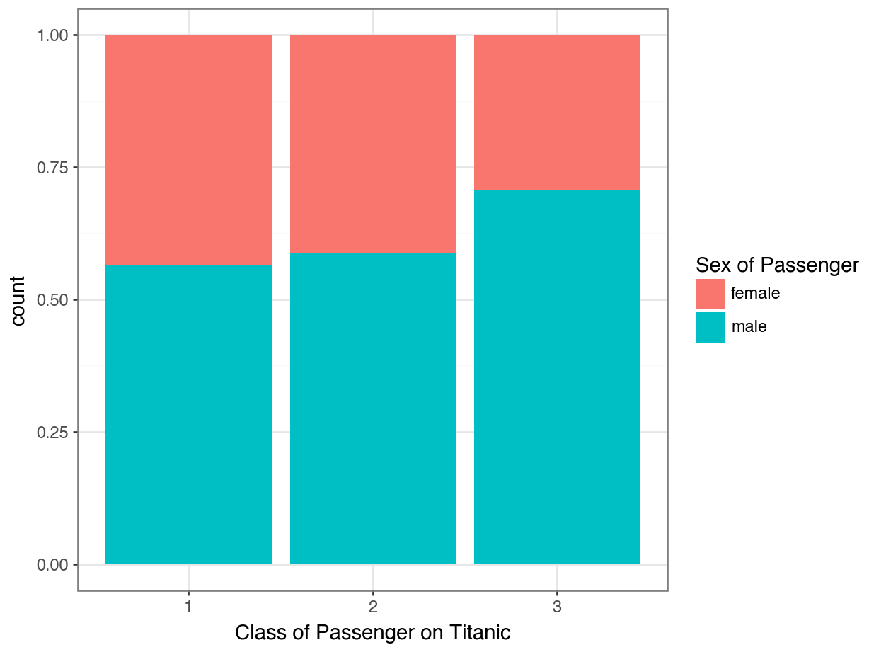Technically, you could still use geom_bar(), but you would need to specify that you didn’t want it to use stat = "count" (the default). You’ve already calculated the proportions, so you would use geom_bar(stat = "identity").