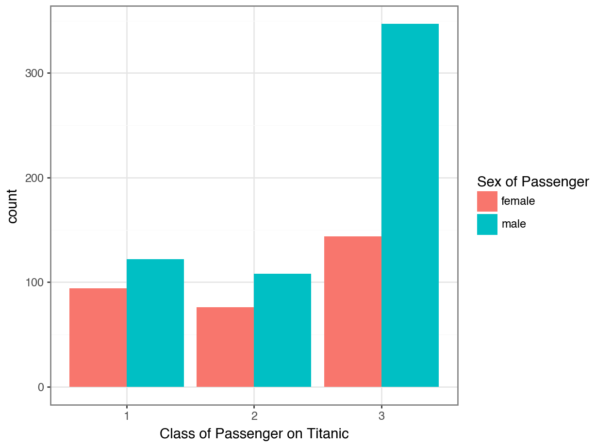 female counts, since those bars are stacked on top.What are some pros and cons of the side-by-side bar plot?