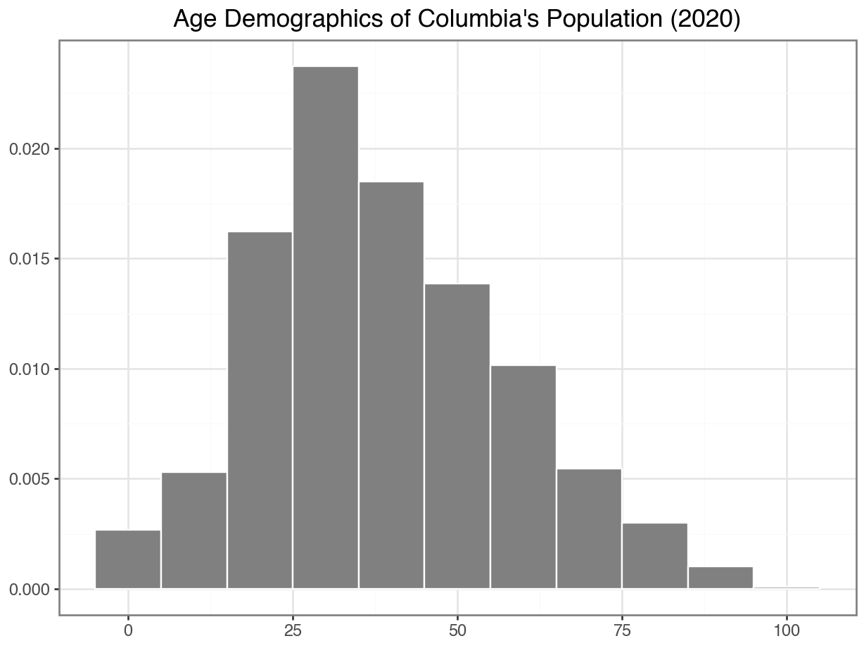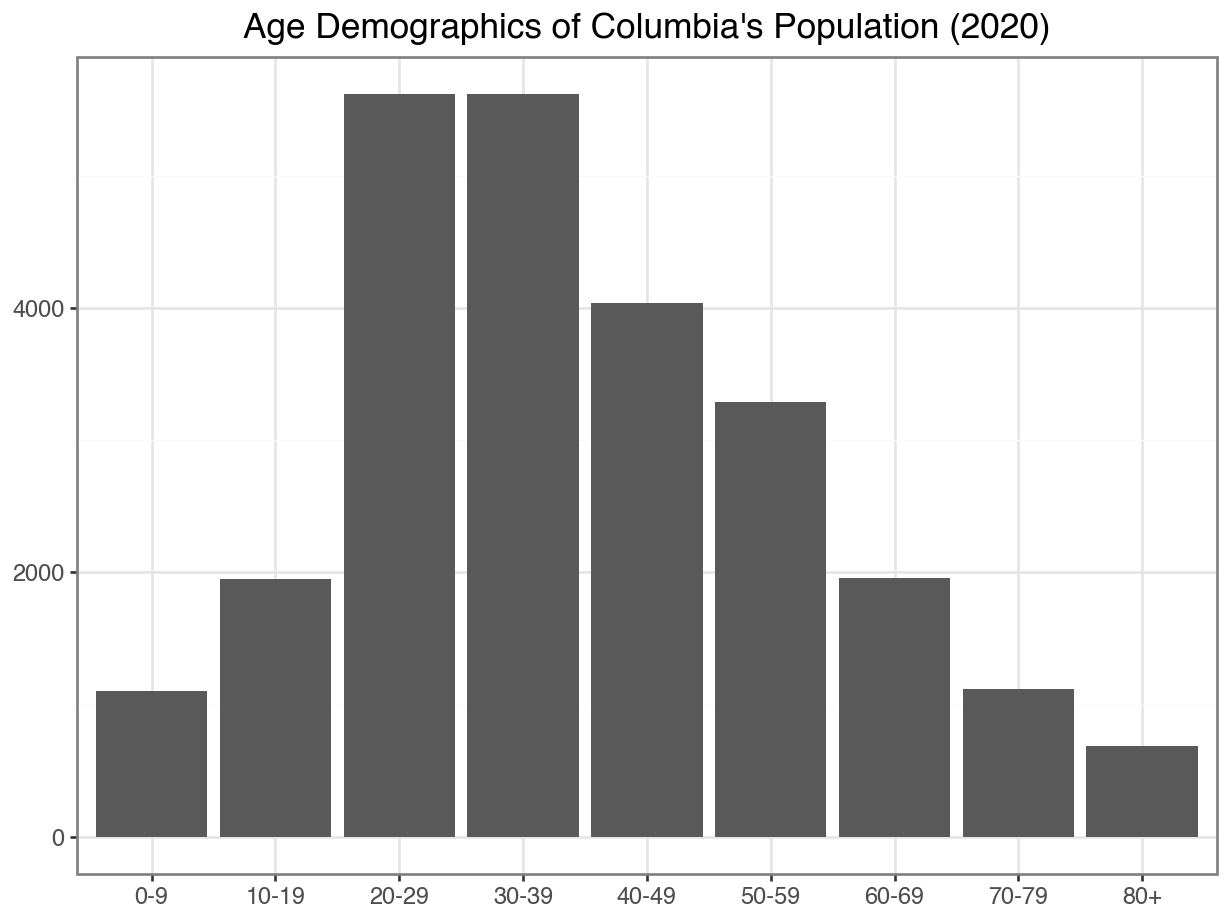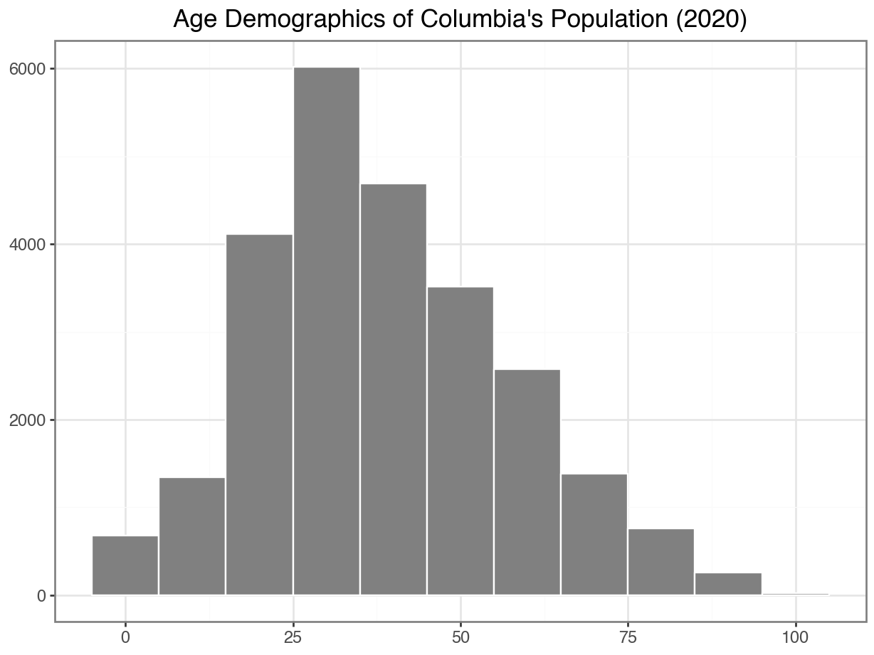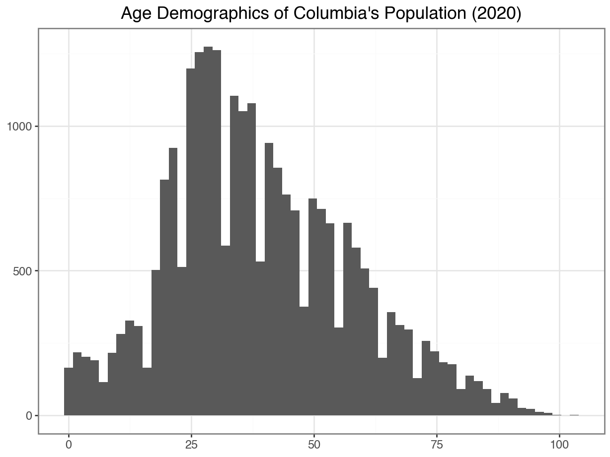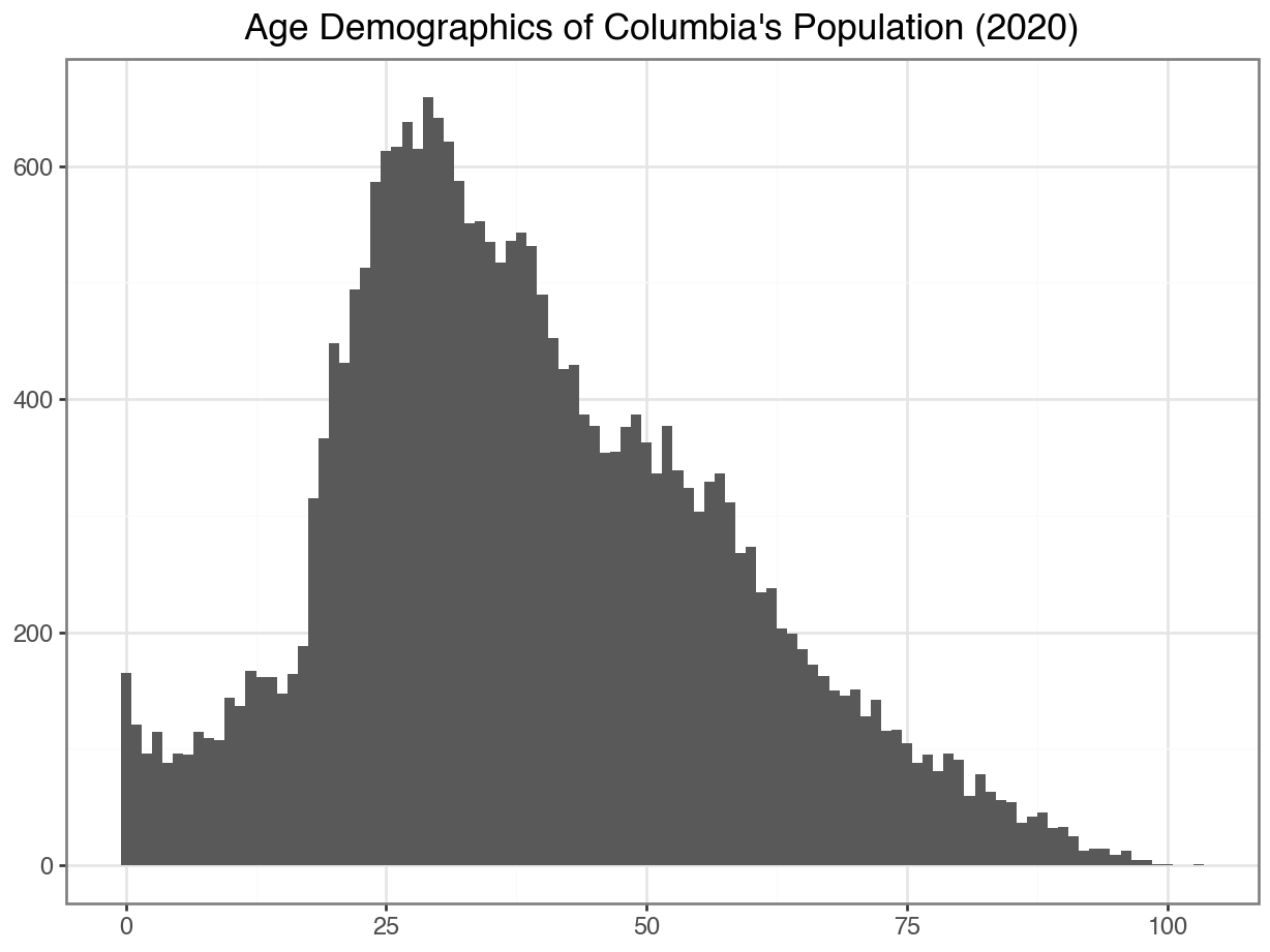 Median age in the Columbia data: