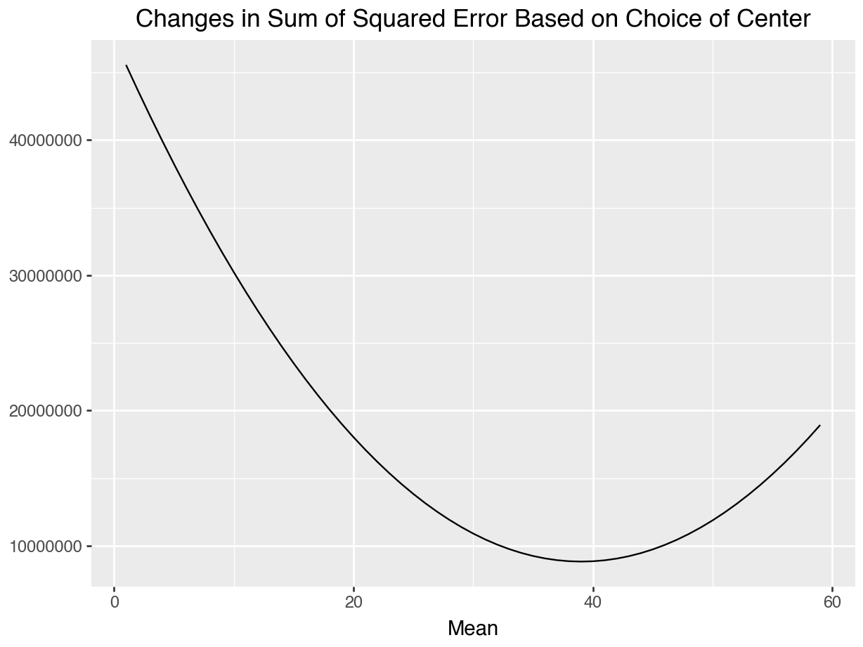 title = "Changes in Sum of Squared Error Based on Choice of Center")