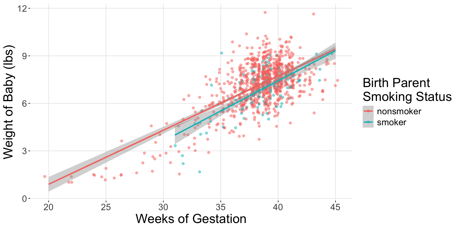 smoke_lm <- lm(weight ~ weeks * habit, data = ncbirths)