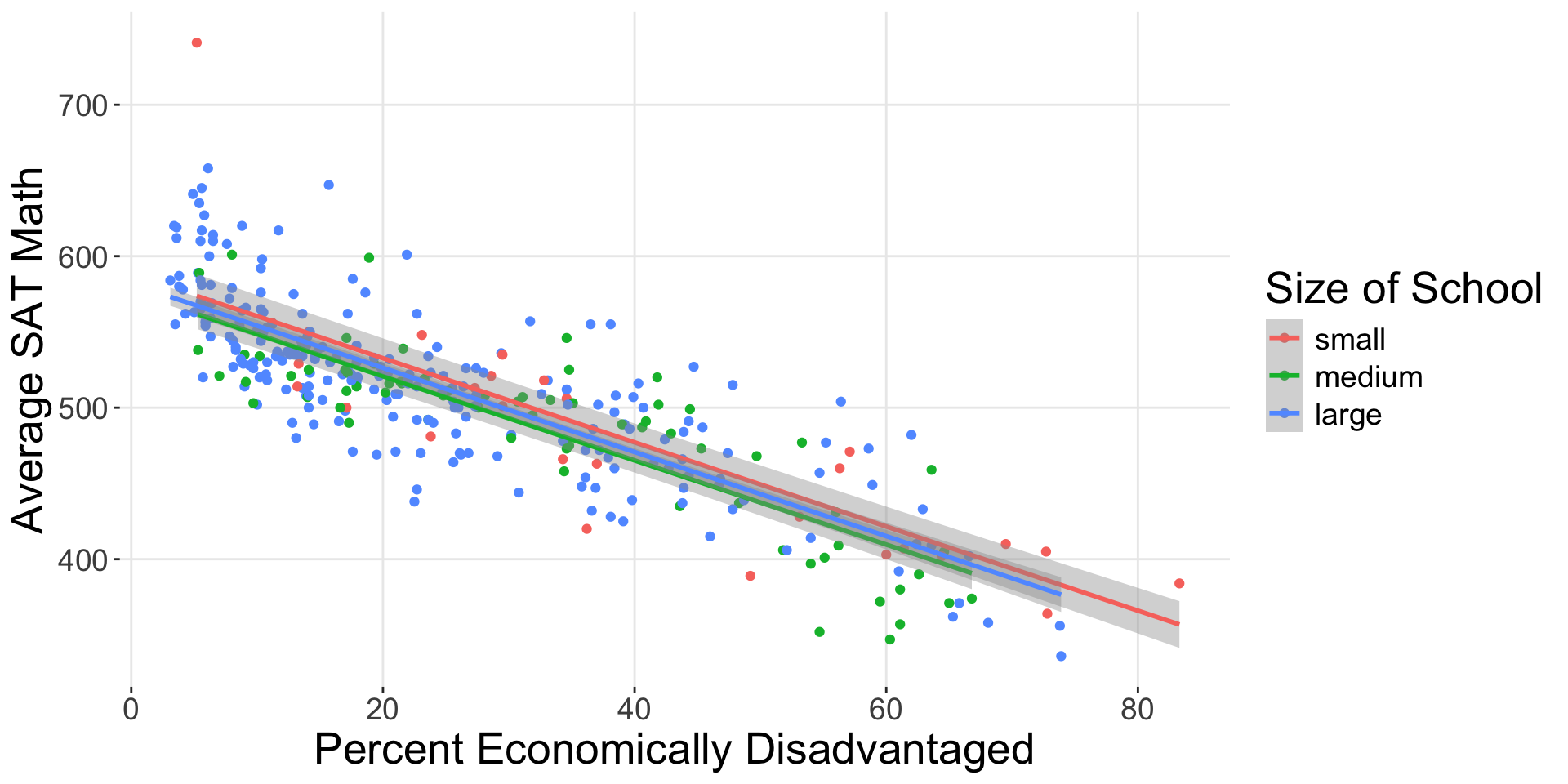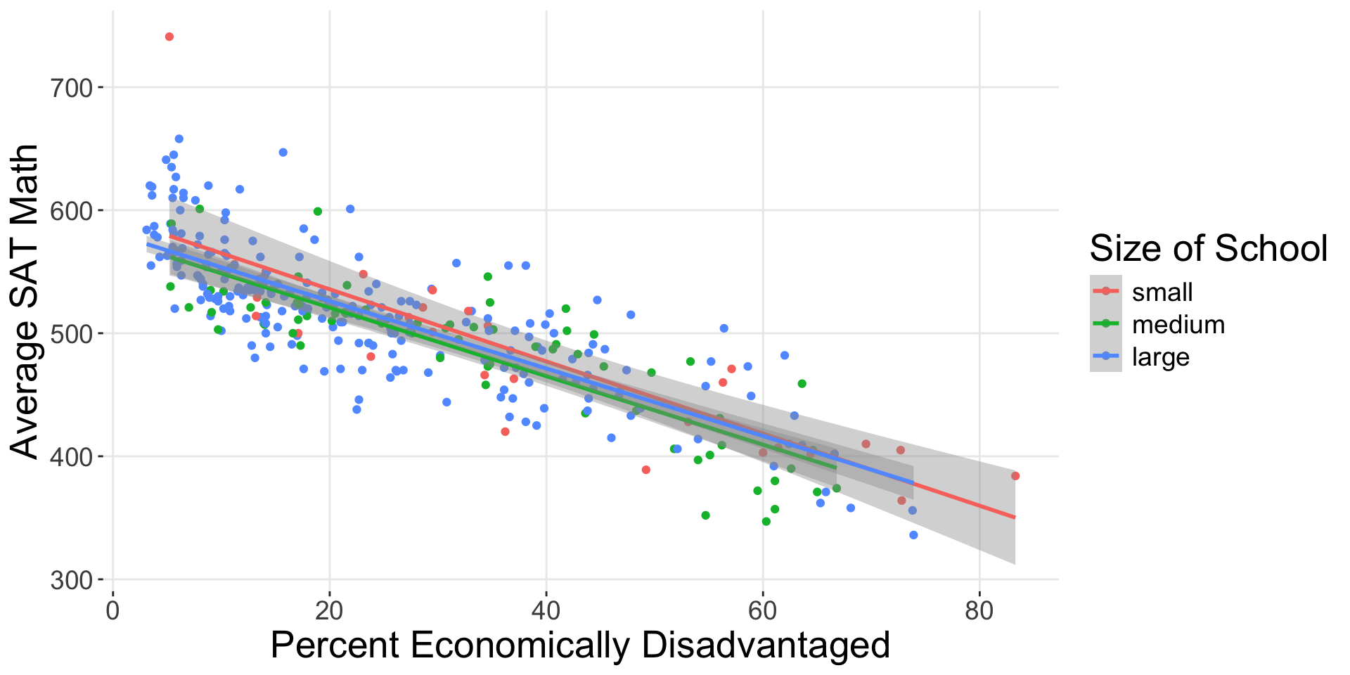 \[\widehat{SAT}_{large} = (588 - 6.36) - 2.78 \times \text{percent disadvan}\]